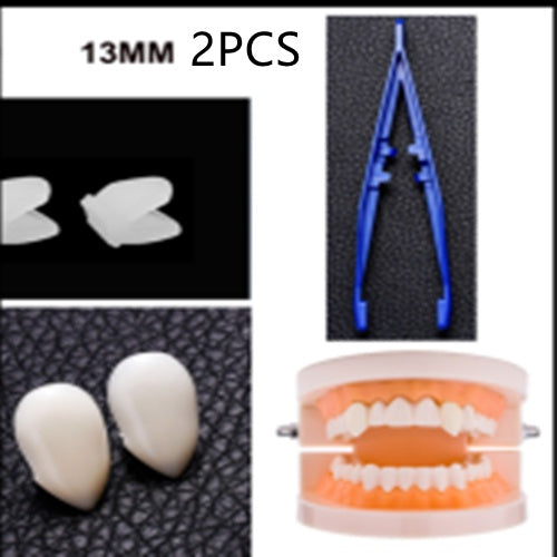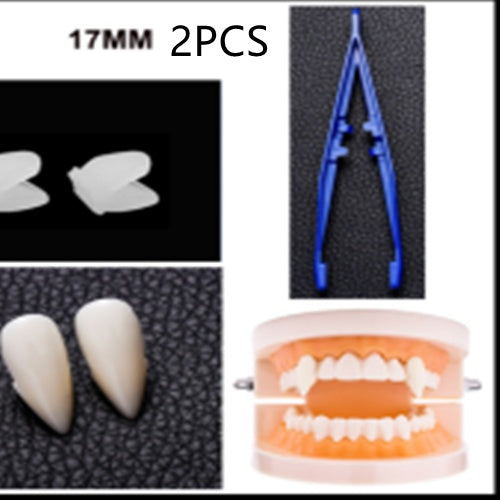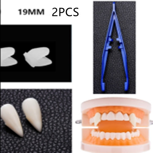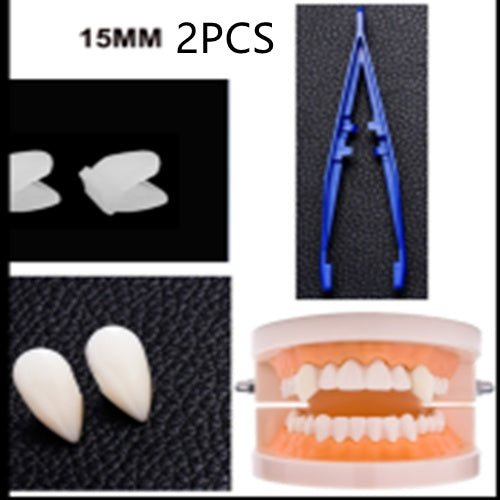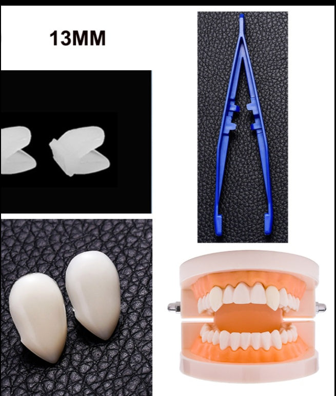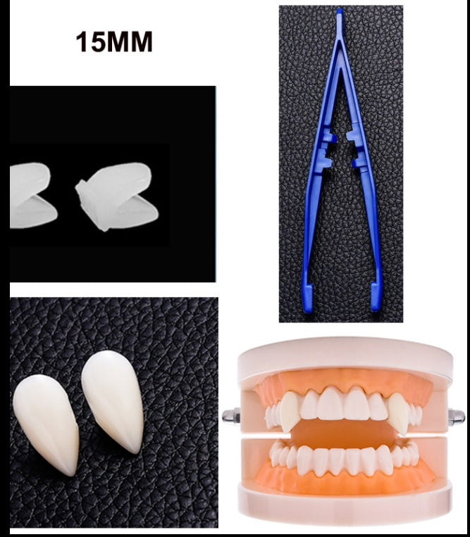 Resin fixes fangs to teeth. Easy to remove and non-toxic.