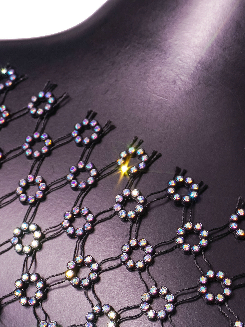 Ladies, get ready to turn heads and make a bold statement with our Mesh Rhinestone Vest. This daring and alluring piece will take your outfit to the next level.